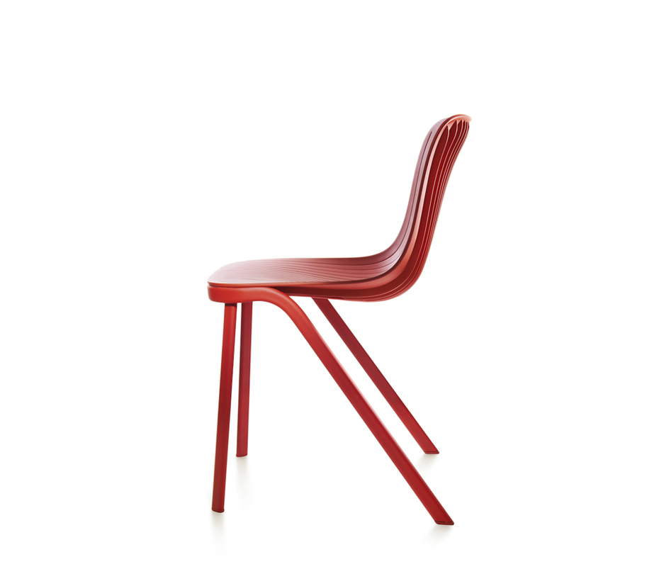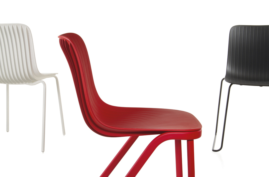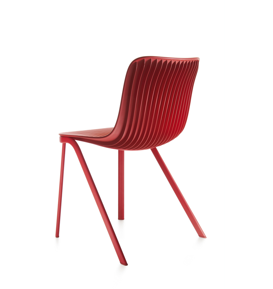 La sedia Dragonfly di Segis nasce dall’osservazione del corpo delle libellule caratterizzato da uno sbilanciamento di peso tra le gambe che sono nella parte anteriore del corpo e tutta la coda che è a sbalzo. Così è nato questo gioco formale di una sedia in cantilever con le gambe innestate sul fronte della sedia e la seduta che sembra sfidare la forza di gravità. Non impilabile.