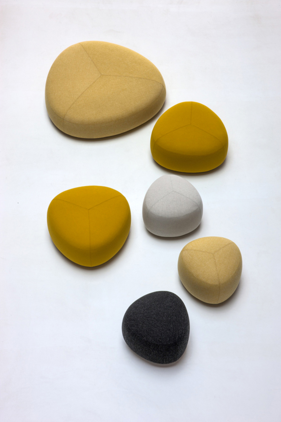 Kipu nasce dalla suggestione di un levigato ciottolo di fiume, ispirato agli elementi naturali: la forma deriva dalla severità del triangolo, ammorbidita dalla scelta dei colori e dei tessuti, attraversata da cuciture a vista che ne sottolineano lo spirito contemporaneo e informale. Kipu è destinato ad ambienti di lavoro, spazi di aggregazione informale, zone di attesa, biblioteche ma anche ambienti domestici.