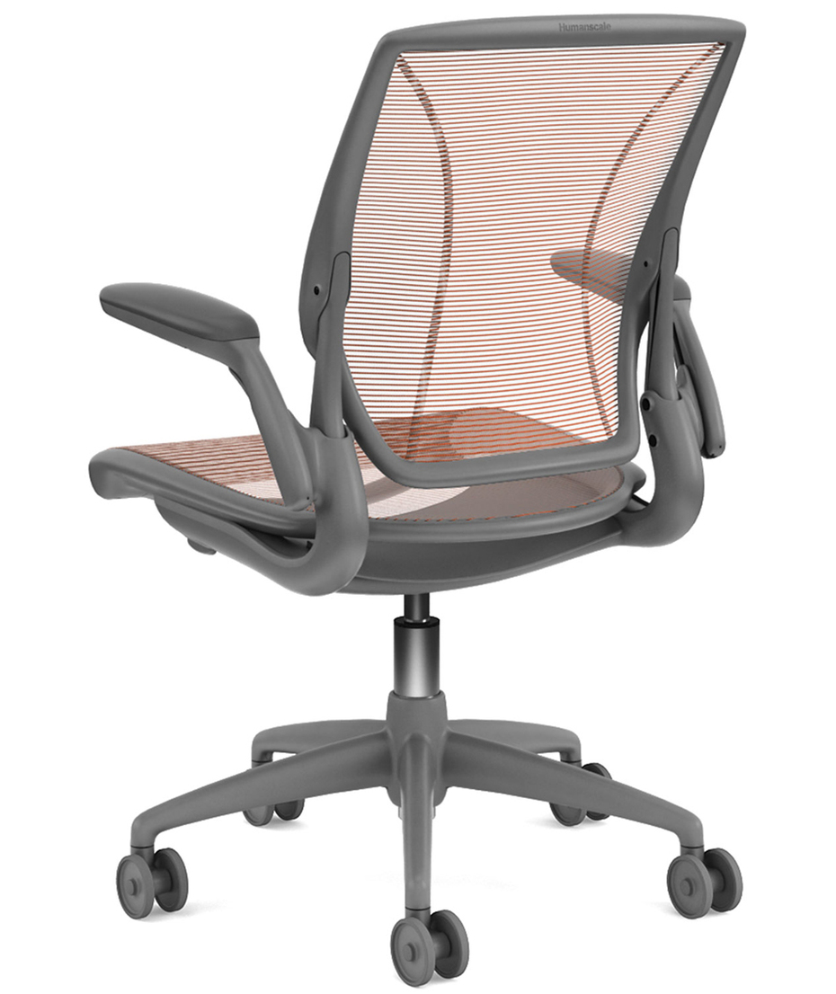La sedia Diffrient World dispone di una tecnologia ispirata dai principi della dinamica: libertà dei movimenti, schienale regolabile in modo automatico e bilanciato con il peso dell’utilizzatore. La rete ad alta resistenza è disegnata a tre maglie e offre un incomparabile supporto del tratto lombare e dorsale. Anche il sedile è in rete, riduce al minimo la pressione sui muscoli posteriori delle cosce.